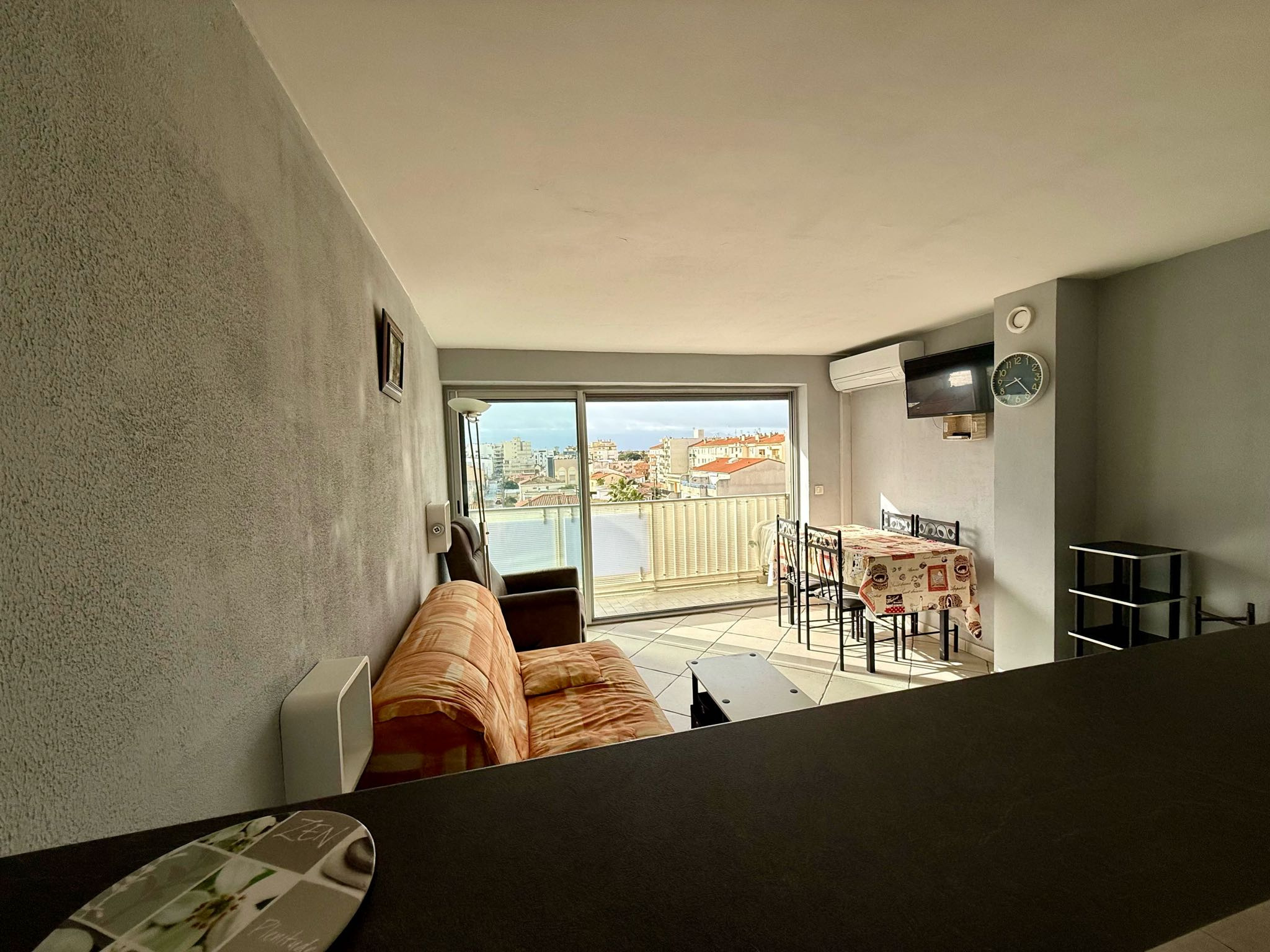 A Canet Plage, au sein d'une résidence sécurisée nous vous proposons à la vente cet appartement 2 pièces traversant. Il se compose d'une entrée, salon séjour avec cuisine américaine, une chambre avec placard, salle d'eau et toilettes séparées.L'appartement est vendu entièrement meublé. Vue mer et montagne depuis le salon. Parking commun sécurisé au pied de la résidence. Contactez-nous pour plus d'informations.